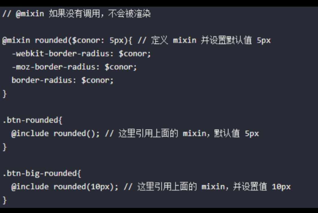 @mixin 定义一个类或方法,在其它地方通过 @include 引用这个方法或类。